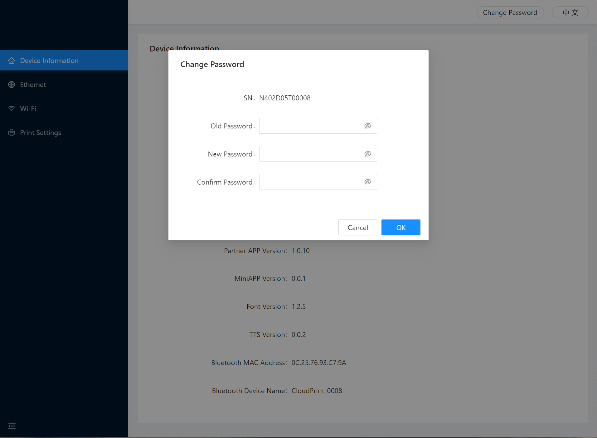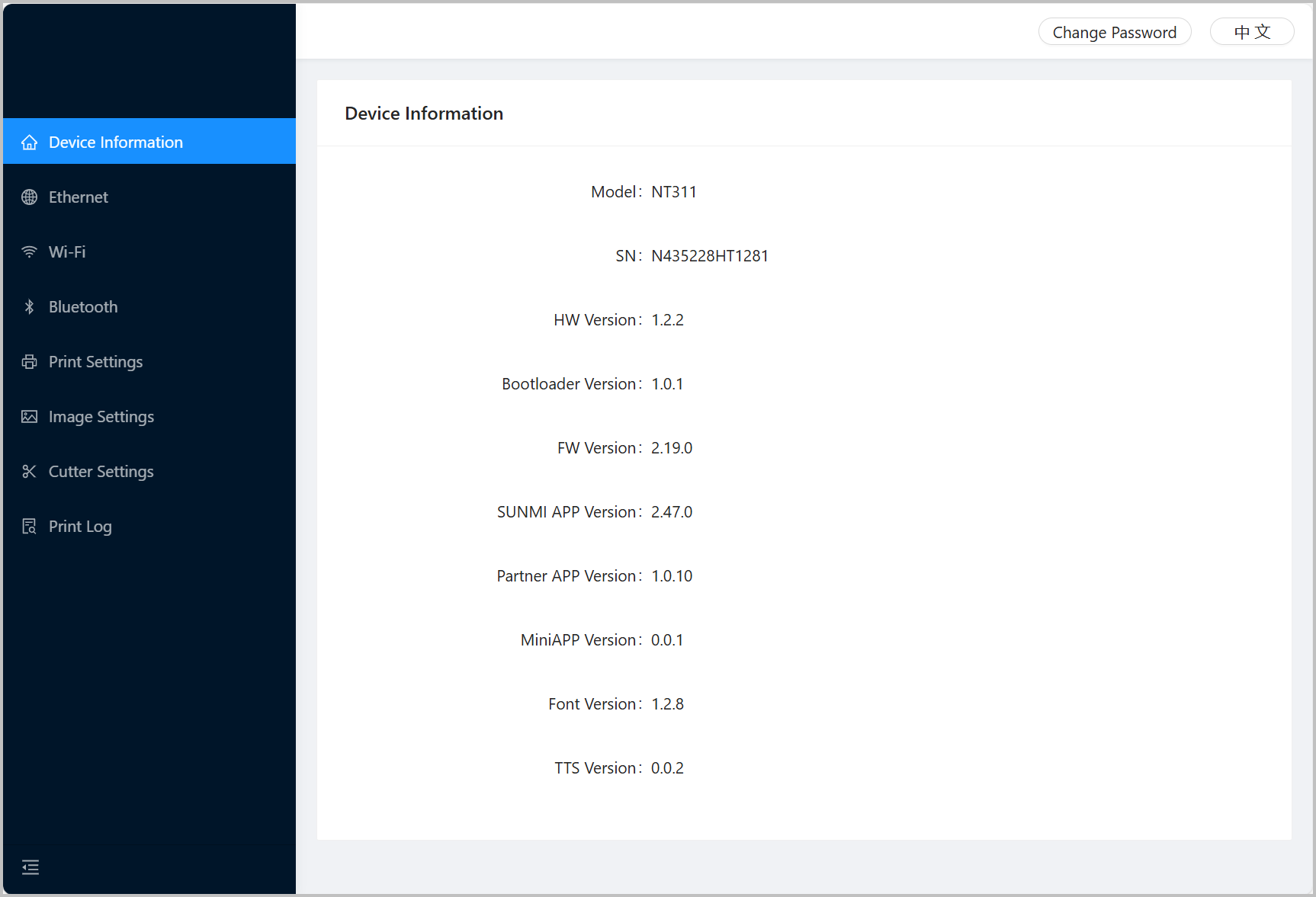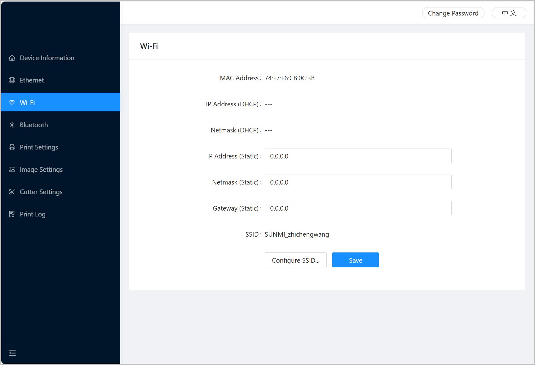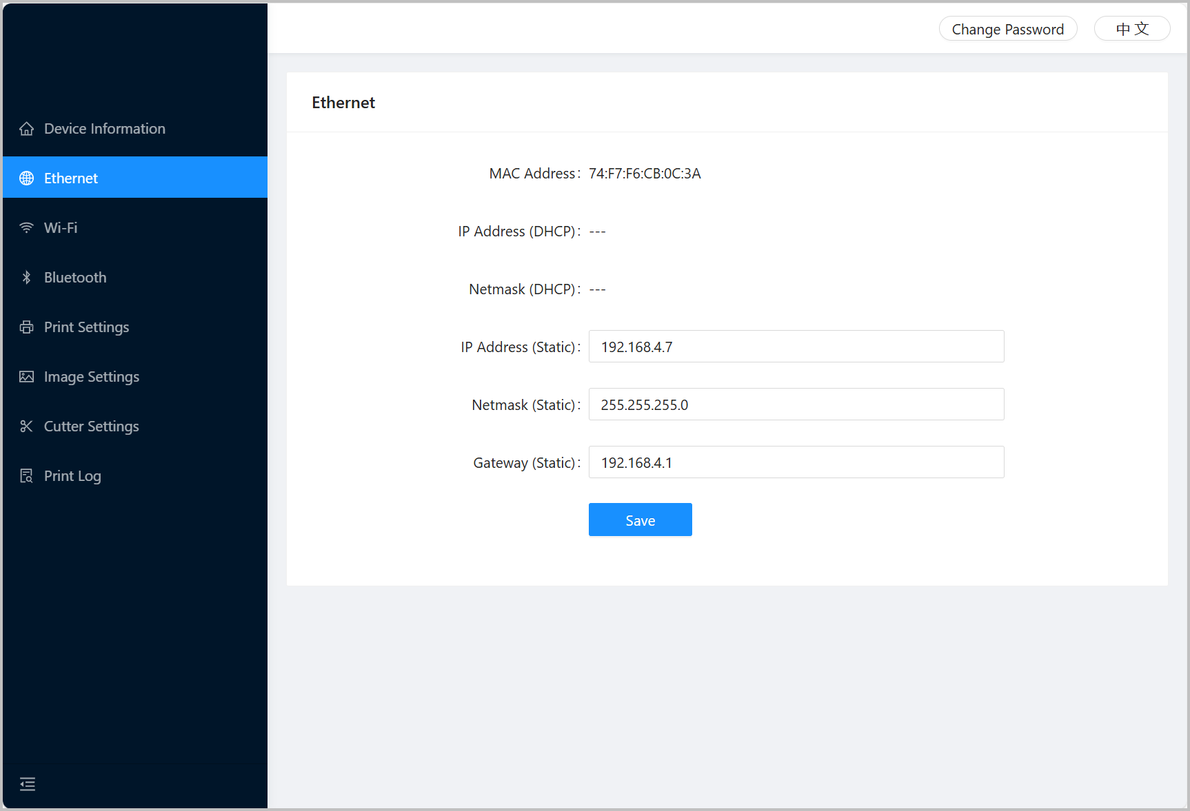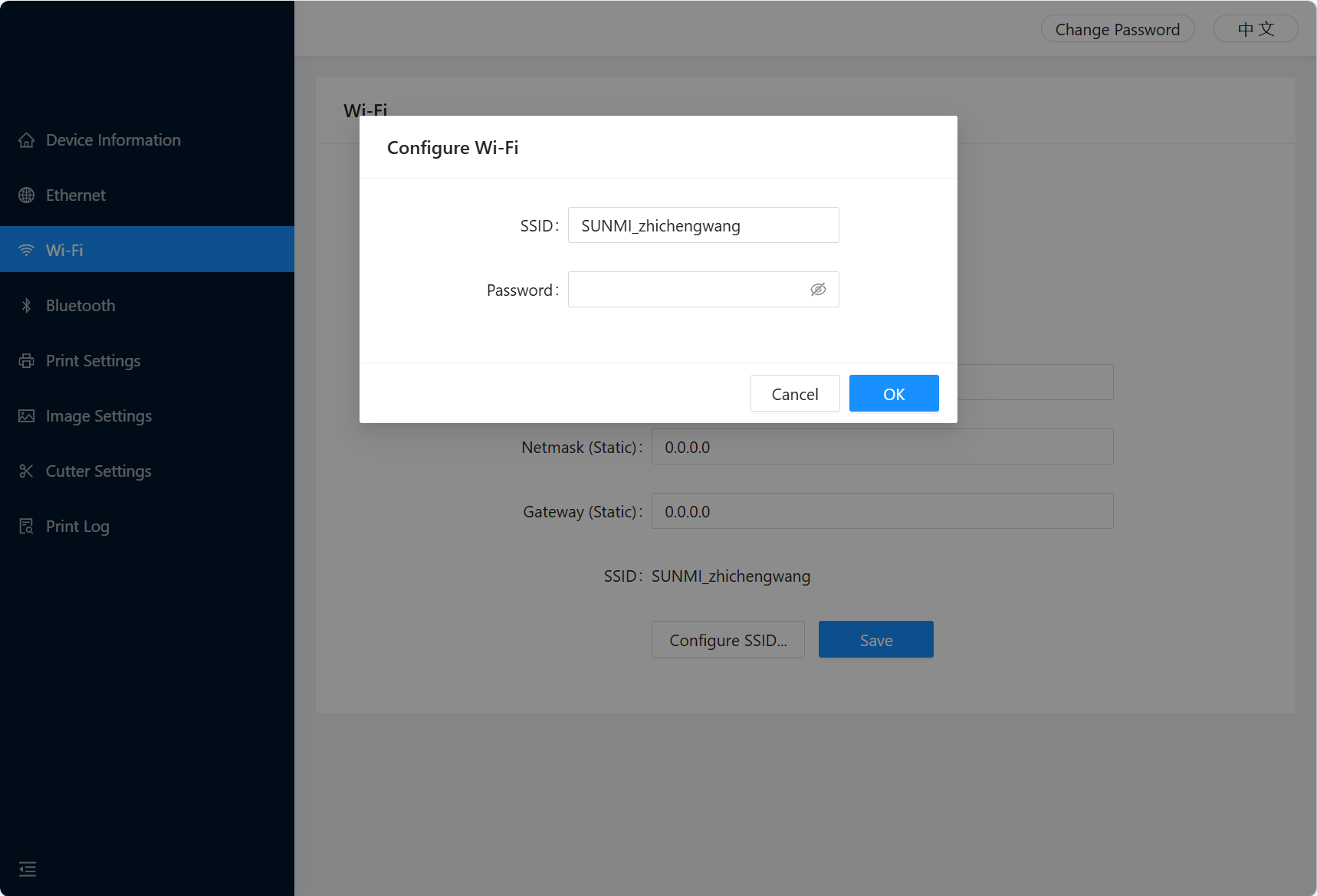 Avaa selain ja kirjoita tulostimen IP-osoite (esim. http://192.168.1.100) sen kuittitulosteen mukaan. Oletussalasana on tyhjä, eli voit klikata Log in suoraan.